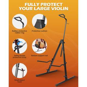 O suporte ajustável para violoncelo STRICH é uma solução versátil e durável para músicos que precisam de um suporte confiável para seus instrumentos de baixo de cordas. Compatível com uma ampla variedade de tamanhos de violoncelo (1/8 a 7/8), este suporte também acomoda contrabaixos, contrabaixos, violinos baixos, violinos e contrabaixo. Com uma altura ajustável para um ajuste personalizado, o suporte é feito com uma construção metálica resistente e uma base triangular para máxima estabilidade. Um gancho de arco embutido garante que seu arco esteja sempre ao alcance, enquanto o design removível e dobrável facilita o transporte e o armazenamento. Com acolchoamento protetor de borracha e anéis antiderrapantes, este suporte oferece a melhor proteção e estabilidade para seu instrumento. -?Design multifuncional?Este suporte para violoncelo é adequado para uso com contrabaixo, contrabaixo 1/4, violinos baixos, violinos e contrabaixo, tornando-o uma opção versátil para todos os instrumentos de contrabaixo -?Compatível com vários tamanhos de violoncelo?O suporte ajustável para violoncelo STRICH foi projetado para caber em violoncelos de tamanho 1/8, 1/4, 1/2, 3/4, 4/4 e 7/8 - Ajustável Altura?A haste principal e as pernas da base do Cello Stand são ajustáveis em altura para caber em violoncelos de vários tamanhos e outros instrumentos, oferecendo uma solução personalizada. -?Construção robusta em metal?O suporte para violoncelo é feito com metal durável e uma base triangular para máxima estabilidade, evitando tombamentos em diferentes ambientes. -?Gancho de laço embutido?O suporte para violoncelo inclui um gancho conveniente para segurar seu arco com segurança, garantindo que ele esteja sempre acessível e seguro. -?Design removível e dobrável?As peças do Cello Stand são fáceis de montar e desmontar, com barras de suporte dobráveis para fácil transporte e armazenamento. -?Acolchoamento protetor?Com acolchoamento de borracha nos pontos de contato e anéis antiderrapantes na base, o Cello Stand evita danos e mantém seu instrumento estável.