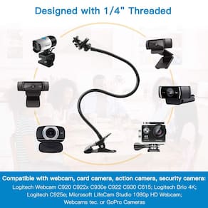 Pipishell Suporte de webcam de 63 cm, suporte flexível de pescoço de ganso para webcam Logitech C960 C930e C930 C920 C920S C922x C922 Brio 4K C925e C615 e outros dispositivos com rosca de 0,6 cm - - O comprimento do suporte da webcam com pescoço de ganso pode se estender ao máximo em aprox. 64 cm. Peso do item deste tirpod de webcam: Aprox. 400 g - O adaptador de 1/10.2 cm deste suporte de webcam serve para a maioria das webcams de parafuso de 1/10.2 cm, como Logitech Webcam Brio 4K, C925e, C922x, C922, C930e, C930, C920, C615 e outros dispositivos com rosca de 1/10.2 cm. - O grampo de webcam para montagem em mesa serve para mesas, aparadores ou camas com espessura máxima de 4 cm (1,58 polegadas). Este tripé de webcam é perfeito para a maioria das ocasiões. - A cabeça do mini tripé deste suporte de câmera pode ser girada 360 graus e pode ser ajustada para obter diferentes ângulos. - Este suporte de webcam tem um peso máximo de carga de 1,1 kg; não é adequado para câmeras ou dispositivos pesados. O tripé da webcam pode se tornar mais estável se você dobrar o tubo em forma de "S" para prender na mesa ao usar o suporte da webcam. Fornecemos um guia do usuário padrão deste suporte de câmera para ajudar a tornar a instalação o mais fácil e conveniente possível. Se você tiver algum problema com este suporte de webcam, sinta-se à vontade para entrar em contato conosco a qualquer momento.