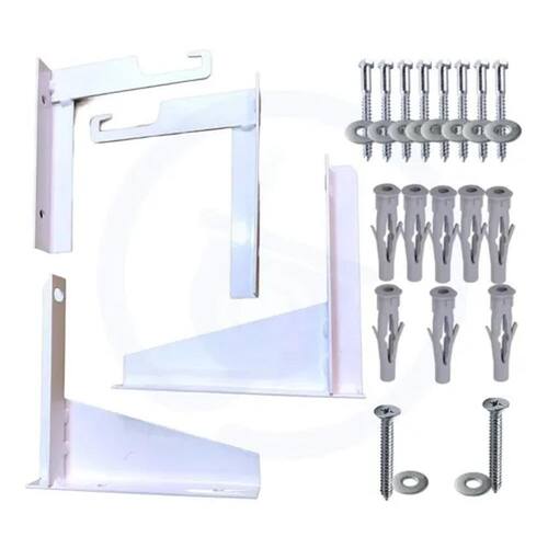 Com este suporte, você receberá 2 suportes para o lado direito e 2 suportes para o lado esquerdo, para garantir a máxima estabilidade e segurança da sua secadora. Além disso, serão fornecidos 8 parafusos grandes, 8 buchas expansivas, 10 arruelas e 2 parafusos menores para fixação na secadora.