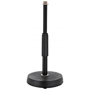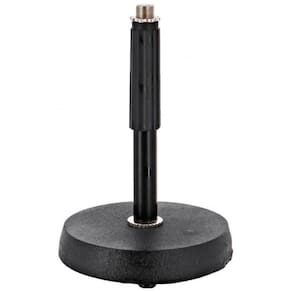 Mini suporte para microfone - Tipo:reto. - Base: sólida ferro - Sistema de ajuste da altura: rosca de aperto rápido. - Excelente estabilidade e capacidade de carga. - Rosca:3/8 com adaptador para 5/8 . - Montagem simples. Dimensões: Altura: 25 - 40 cm Diâmetro da base:17 cm - Material:aço - Peso:1,7 kg - Cor: preto - Origem: - Ideal para uso em superfícies e mesas de rádios,studios,home studios,TVs,entre outros locais.Solução perfeita para músicos,cantores,Youtubers,produtores,narradores e diversos outros profissionais. Obs: Não acompanha microfone ou qualquer acessórios Homologação Anatel: 136132205567 Marca: Aj Som Acessórios Musicais Ean: 7908403306336