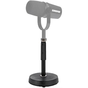 Mini suporte para microfone - Tipo:reto. - Base: sólida ferro - Sistema de ajuste da altura: rosca de aperto rápido. - Excelente estabilidade e capacidade de carga. - Rosca:3/8 com adaptador para 5/8 . - Montagem simples. Dimensões: Altura: 25 - 40 cm Diâmetro da base:17 cm - Material:aço - Peso:1,7 kg - Cor: preto - Origem: - Ideal para uso em superfícies e mesas de rádios,studios,home studios,TVs,entre outros locais.Solução perfeita para músicos,cantores,Youtubers,produtores,narradores e diversos outros profissionais. Obs: Não acompanha microfone ou qualquer acessórios Homologação Anatel: 136132205567 Marca: Aj Som Acessórios Musicais