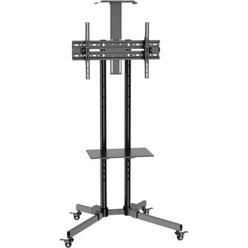 - Pintura com tratamento anticorrosão - Rodízios com travas para facilitar o - Organizador de cabos interno - Bandeja superior: suporte até 2kg - Bandeja inferior: suporte até 6kg - Ampla capacidade de carga: 50kg - com grandes televisores: 32 ~75 - Compatibilidade: indicado para TVs LED, LCD e Plasma - Compatíveis com padrões de fixação VESA 100x100 a 600x400 (HxV)