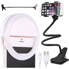 Suporte Pescoço Ganso Flexível Celular Universal Ring Light Kit youtuber suporte articulado pescoço ganso flexível celular universal + luz led flash ring light selfie recarregável Kit youtuber com eletrônica Kit 2 em 1 suporte articulado + mini flash ring light recarregável Kit profissional,completo,de qualidade e com eletrônica.São itens para melhor qualidade de seus vídeos e fotos. O kit contém: 1 flash selfie recarregável com cabo para recarga 1 suporte universal celular articulado Suporte universal celular articulado -tamanho da aste: aproximadamente 60 cm -abertura para o aparelho: +- 09 cm -abertura de fixação : +- 04 cm Suporte universal articulado para celular/smartphone, gps.Compatível com aparelhos samsung, , motorola entre outras marcas.Projetado com duplo grampo e o dobro de segurança para seu aparelho.Com o suporte articulado flexível pescoço de ganso, você pode ajustar livremente o melhor ângulo de visão, inclusive giera 360 graus.Interior macio com almofada de borracha para fornecer a segurança extra para seu aparelho.Apropriado para todos os tipos de celulares, gps, e de outros equipamentos. Pode ser utilizado na cama, mesa, cozinha, no escritório e em qualquer superfície onde possa prender o grampo, ou seja, você irá fixá-loem qualquer lugar que deseje.Assim poderá utilizar seu equipamento para reproduzir músicas, realizar chamadas ou visualizar filmes e fotos. Flash selfie ring light recarregável Clipe com feixes de led para adaptar em tablets, smartphones, notebook ou aonde quer que seja.O clipe funciona com bateria interna, carregado por um cabo usb, com 3 níveis diferentes de led; fraco, médio e forte. Utilize como desejar -mude a iluminação de suas selfies com essa incrível novidade e registre os momentos únicos com mais luz e brilho. -iluminação forte porem não danifica sua visão, pode ser transportado facilmente no bolso ou qualquer outro compartimento Compatível: o clipe é universal, sem restrições. Pode ser até que sua abertura para prender seja compatível; em geral, o clipe é compatível com a grande maioria de smartphones e alguns tablets. Especificações: - 3 ajustes de cor: baixo, médio e forte - luz branca fria - temperatura da cor: 5000k - 7000k .