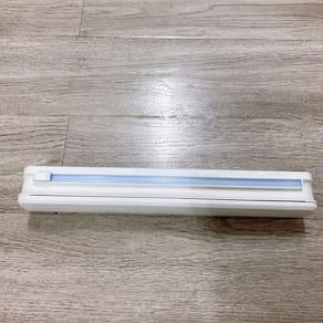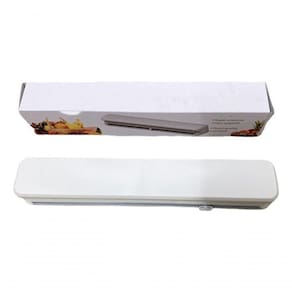 Suporte Plástico Filme Cozinha Embalar Alimentos Cortador prático, conveniente, design e qualidade boa!! * Material: ABS * Cor: branco * Tamanho: 37cm x 6cm x 5cm