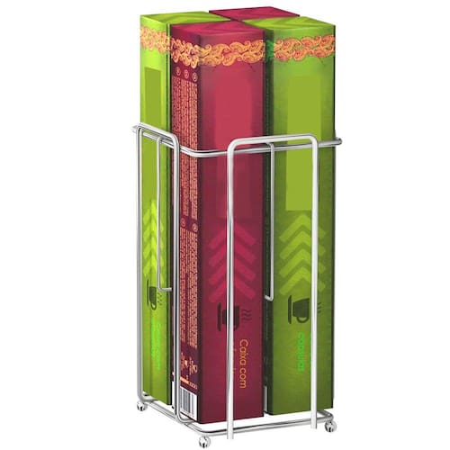 Este organizador para caixas de cápsulas de café é perfeito para organizar seu armário ou bancada. O suporte comporta 4 caixas e é compatível com Nespresso. Fabricado em aço cromado é altamente durável e resistente à ferrugem. Organize a bancada do café com um suporte fácil e prático de usar.