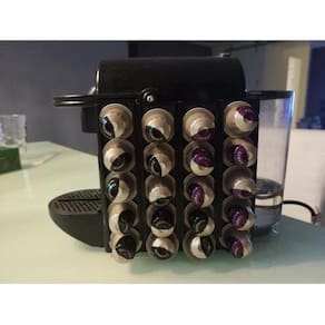 Suporte Porta Capsula Nespresso 20 Capsulas Lateral, Parede Descrição:uma opção bem legal para vc colocar as suas cápsulas nespresso na parede. Você pode colocar na parede ou como eu , colocar ao lado da cafeteira Inissia por exemplo. são 4 colunas e cada uma delas cabem 5 cápsulas Vem com fita dupla face para fixação. Aviso: Na cafeteira Inissia ela fica um pouco fora da parede da cafeteira veja nas fotos por favor , o último andar fica um pouco para fora. Se vocês quiser deixar alinhada você pode cortar com tesoura o molde , porém irão caber uma menor quantidade de cápsulas. ITENS INCLUSOS 1 um molde para cápsulas nespresso INFORMAÇÕES TÉCNICAS - ESPECIFICAÇÕES Material: Plástico ABS Premium Dimensões: 16 x 16 x 0,5 cm Peso: 20 gramas Cor: Preto consigo fazer em branco, mas leva alguns dias para produzir, favor perguntar disponibilidade Fabricante: SNS3D Código do Produto: Observações Não usamos tinta nos produtos. A matéria prima já é da cor informada. No campo de especificações técnicas você encontrará o material utilizado para este produto. De acordo com cada tipo de produto, usamos um material específico para que atenda a necessidade e objetivo do produto. O material pode variar, mas o método de fabricação é o mesmo. Fabricamos nossos produtos via impressão 3D.. Imagens ilustrativas Fabricado via impressão 3D, este tipo de item possui marcas características do método de fabricação. Cápsulas não inclusas Marca: Sns3D