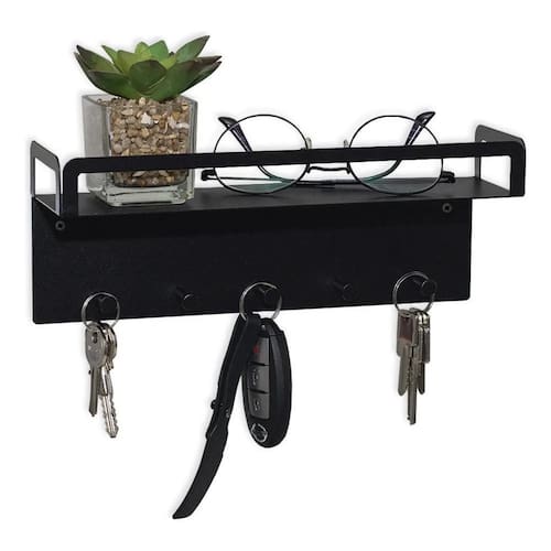 Suporte Porta Chaves Com Prateleira Para Decoração Aço Preto