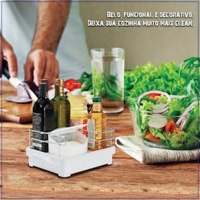 O porta condimentos da Utimil chegou para facilitar sua vida na cozinha. Com visual único e aramado, que facilita a visualização dos produtos, possui espaço para acomodar óleo, azeite de oliva, sal e vinagre balsâmico, pode ser levado a mesa ou acomodado no armário quando não estiver em uso. Perfeito para deixar os temperos de maneira organizada e funcional.