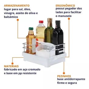 Suporte Porta Condimentos para Cozinha Branco Azeite Vinagre Sal Temperos Utimil.