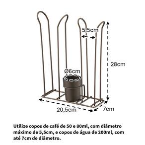 Os copos descartáveis necessários em casa ou no escritório para chá, café e água ficam concentrados no Organizador. Além disso, tem compartimento especial para os mexedores. Utilize copos de café de 50 e 80ml, com diâmetro máximo de 5,5cm, e copos de água de 200ml, com até 7cm de diâmentro.