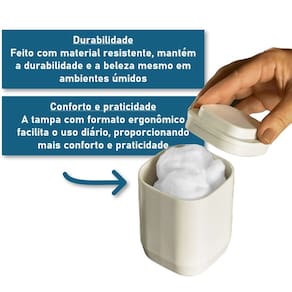 O porta algodão Ou da Linha Aura combina praticidade e estilo com uma tampa ergonômica que facilita o uso diário. Ideal para armazenar bolas de algodão, discos ou cotonetes, mantém tudo organizado de forma funcional. Seu design moderno e minimalista valoriza a decoração, enquanto o acabamento fosco traz sofisticação e suavidade, criando um ambiente digno de um spa em casa.