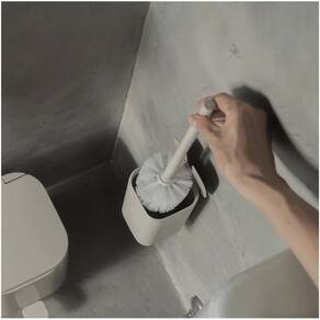 A escova sanitária de piso/parede Ou da Linha Aura é compacta e com tampa, garantindo mais higiene e otimização do espaço. Pode ser instalada no piso ou na parede, liberando espaço e facilitando a limpeza do ambiente. O sistema de abertura da tampa, acionado diretamente pela escova, oferece praticidade no uso diário, enquanto o adesivo transparente cria um efeito flutuante que traz modernidade à decoração.