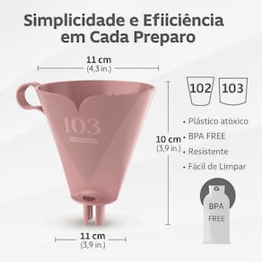 Suporte plástico com design clássico para filtro de café tamanho universal 103. Encaixe perfeito em bule, térmicas e na decoração da sua cozinha. • Tamanho 103. • Todos os produtos Sanremo são atóxicos: livres de BPA. Marca: Não Informado