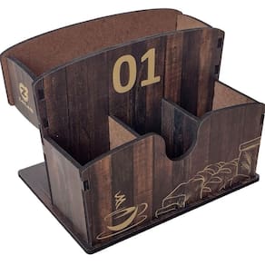 Suporte Porta Guardanapos 1 ao 10 Zanline MDF Restaurante Sachê de Mesa Marrom.