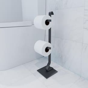 Suporte Porta Papel Higiênico De Chão Duplo Preto Aço Fenix Porta papel higiênico de chão é prático, dispensa o uso de ferramentas para instalar, evitando transtornos, furos nas paredes e sujeiras.