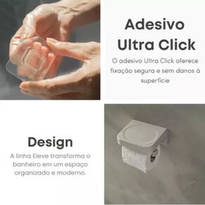 Descrição: O Porta-Papel Higiênico de Parede da Linha Eleve é a solução ideal para quem busca praticidade e organização no banheiro. Com tecnologia de fixação adesiva Ultra Click, dispensa furos na parede, proporcionando uma instalação segura e sem danos. Seu design moderno e minimalista combina funcionalidade e elegância, garantindo praticidade no dia a dia.
