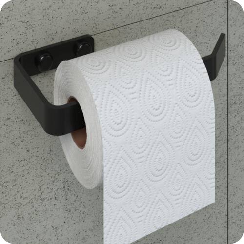 O Porta Papel Higiênico tem um design clean e sofisticado, produzido em barra chata de alumínio maciço, com acabamento em pintura elestrostática epóxi preta garantindo maior durabilidade e resistência, não havendo problemas com ferrugem.