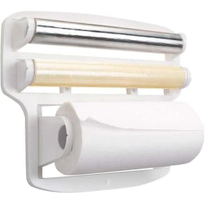 O suporte porta rolos da dr. Útil pode ser colocado em qualquer lugar da sua cozinha ou até em armários, possui porta tripla para rolos e ainda possui regulador de tamanhos para os rolos de papel toalha.