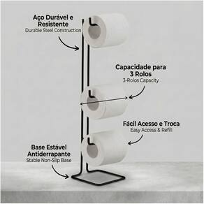 Além de sua funcionalidade impecável, ele serve como um elegante elemento decorativo. Com capacidade para armazenar até 3 rolos, este suporte apresenta um acabamento liso e fosco. A pintura a pó aplicada não só proporciona uma proteção superior contra corrosão, mas também oferece alta resistência ao impacto, garantindo durabilidade e estilo ao longo do tempo.
