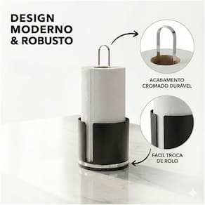 SUPORTE ROLO PAPEL TOALHA PRETO COM CROMADO