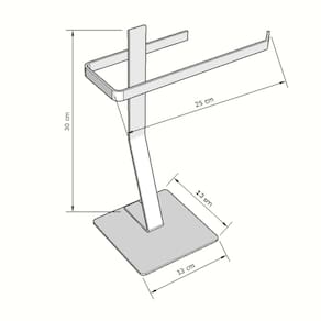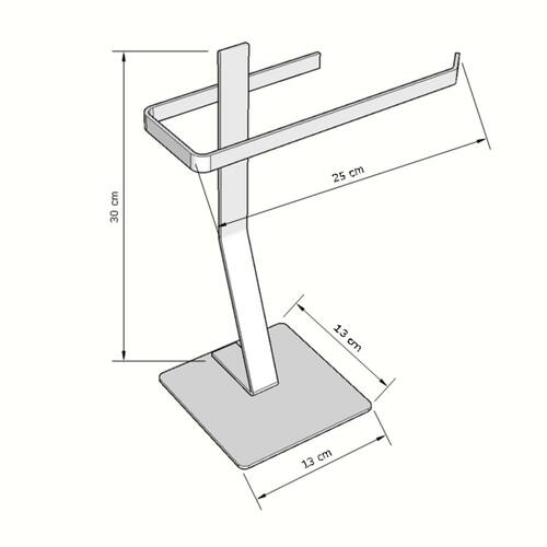 Especificações Técnicas Suporte Cor: Preto Dimensão Base: 13x13cm Altura: 30cm Largura da Hastes do Toalheiro: 25cm