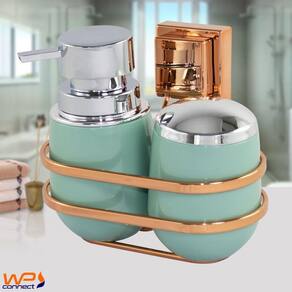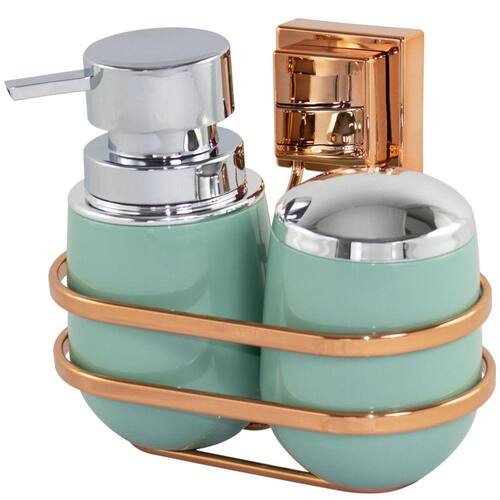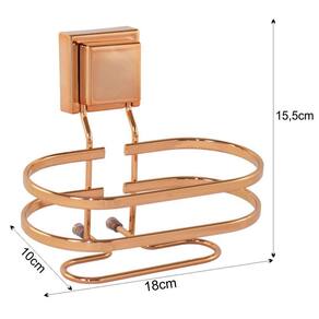 - 01 Suporte Duplo Rosé Gold Fixação Ventosa, 01 Porta Sabonete Líquido 400ml, 01 Porta Algodão