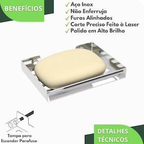 O Porta Sabonete tem um design clean e sofisticado, produzido em barra chata de alumínio maciço, com acabamento Cromado garantindo maior durabilidade e resistência, não havendo problemas com ferrugem.