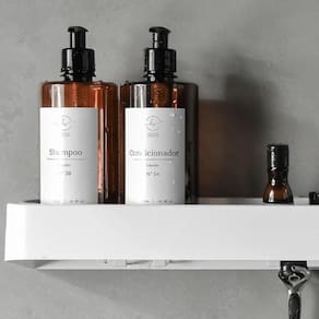 A prateleira de banheiro retangular da marca Ou é uma ótima opção para organizar itens essenciais como shampoos, condicionador, mascaras capilares, sabonetes, esponjas e outros produtos de higiene pessoal dentro do box. Ela ajuda a otimizar o espaço e manter tudo ao alcance das mãos, além de dar um toque de praticidade e estilo ao ambiente. Com sua tecnologia ultra click de instalação, descarta a necessidade de furos na parede. Sua fixação com adesivo extremamente resistente, torna sua instalação fácil e segura.