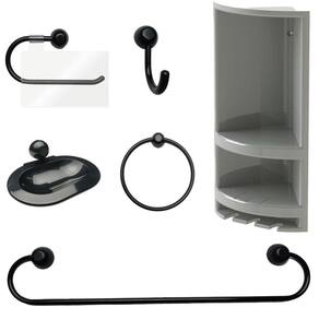 Kit para banheiro redondo 5 peças preto Os acessórios para banheiro são itens essenciais para manter o ambiente organizado, prático e funcional. A papeleira é um suporte para papel higiênico que geralmente é instalado na parede, próximo ao vaso sanitário. O porta toalha argola é um item importante para manter as toalhas sempre à mão e secas. Ele pode ser instalado na parede ou na porta do armário, por exemplo. O porta toalha bastão possui a mesma funcionalidade, e geralmente é fixado na parede, próximo ao chuveiro ou banheira. O cabide simples é um item que serve para pendurar roupas, toalhas e acessórios. Ele pode ser instalado na parede ou na porta do armário, por exemplo. A saboneteira é um item que serve para apoiar o sabonete, mantendo-o seco e evitando que escorregue. Dessa forma, é possível garantir um banheiro organizado e bem equipado, que atenda às necessidades dos usuários.