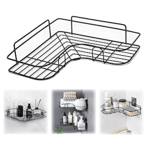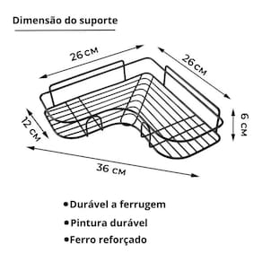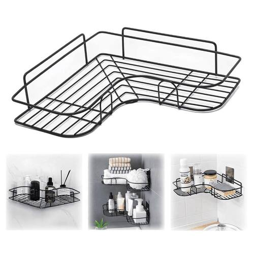 Suporte de Canto Sem Furo Parede Suporta aproximadamente 2kg Acompanha 2 adesivos Porta Shampoo, Condicionador Sabonete Banheiro, Cozinha Prateleira Multiuso Resistente Material: Metal Cor: Preto