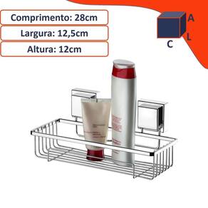 produto deixa o ambiente com um ar de elegância e sofisticação suporte comporta shampoo e utensílios de banheiro fixação feita por meio de ventosa dispensa o uso de ferramentas para fazer a instalação ventosa extraforte, garante uma excelente fixação pode ser fixada e removida com facilidade para o melhor posicionamento seu acabamento garante uma excelente cobertura contra a corrosão