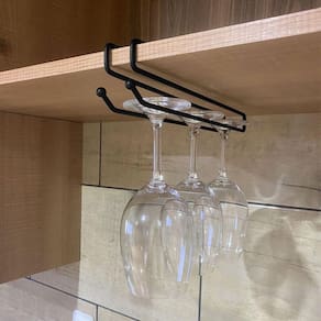 Com este suporte organizador de encaixar você organiza suas taças com praticidade e elegância, aproveitando melhor o espaço do seu armário e prateleiras. Com hastes resistentes e capacidade para até três taças (varia de acordo com o tamanho da taça), este organizador aramado possui fácil instalação sem a necessidade de furar e sujar todo o seu armário, basta colocar o porta taças na prateleira do armário desejado. Sua fabricação em aço cromado com pintura na cor preto fosco, confere ao suporte maior qualidade e resistência.