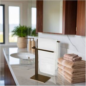 O Toalheiro de Bancada adiciona um toque de elegância e sofisticação ao banheiro, oferecendo não apenas funcionalidade, mas também um elemento decorativo. Ideal para toalhas de rosto ou mãos, possui um acabamento liso e fosco. A pintura a pó aplicada proporciona uma cobertura protetora superior contra corrosão e alta resistência ao impacto.