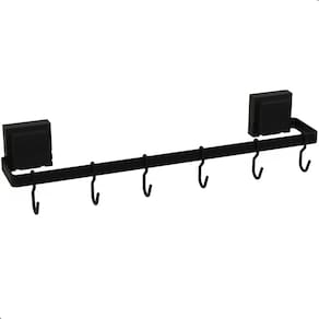 O Suporte Porta Utensílios 6 Ganchos Com Ventosa Preto Max é uma peça versátil e robusta, projetada para proporcionar máxima eficiência na organização do espaço. Composta por 6 ganchos resistentes e uma ventosa de alta aderência, esta solução inovadora dispensa a necessidade de furos na parede, permitindo fácil instalação e remoção, sem danificar superfícies. Seu acabamento preto fosco confere um toque de sofisticação, tornando-o não apenas funcional, mas também um elemento decorativo para a sua cozinha.