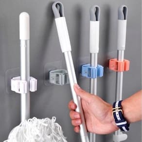 - Suporte com função multiuso, segura vassouras,mop, rodos, pás, escova de banheiro,peças de cozinha ou qualquer tipo de objeto com cabo; - A estrutura do Organizador é composta em plástico PP e sistema e sistema de fixação na parede por adesivo; - Indispensável em empresas, indústrias, oficinas e também em residências; - Suporta até 4kg;