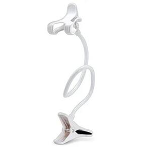 Suporte Portátil Dobrável Articulado Celular Smartphone Cor: branco SUPORTE ARTICULADO para CELULAR, Cama, Mesa, Carro, presilha, Flexível com Garra tipo Pescoço de Ganso. Sensacional para aproveitar o conforto de sua cama, cadeira, para assistir um filme por exemplo com as mãos livres. Tamanho da haste totalmente esticada Aproximadamente 60 cm Abertura para o aparelho Até 09 cm Abertura para mesa Até 06 cm Recomendamos utilizar em superfície firme para melhor aproveitamento. Suporte universal articulado para Celular/Smartphone, GPS. Compatível com aparelhos Samsung, , Motorola entre outras marcas. Projetado com duplo grampo e o dobro de segurança para seu aparelho. Com o suporte articulado flexível pescoço de ganso, você pode ajustar Livremente o melhor ângulo de visão, inclusive gira 360 graus. Interior macio com almofada De borracha para fornecer a segurança extra para seu aparelho. Apropriado para todos os tipos de celulares, GPS, , e de outros Equipamentos. Pode ser utilizado na cama, mesa, cozinha, no escritório e em Qualquer superfície firme onde possa prender o grampo com segurança, proporcionando conforto para assistir seus videos, lives, séries, filmes, músicas, fotos, livros, videochamadas e tudo que desejar. Indicamos usar com a haste dobrada para compensação do peso igual apresentado nas fotos. Material Metal e Plástico. Conteúdo: 1 Suporte articulado.