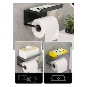 Suporte Preto para Papel Higiênico Premium com Prateleira Suporte Preto para Papel Higiênico Premium com Prateleira ===================================== Além disso, o design moderno confere um toque de elegância, sem abrir mão da funcionalidade. Assim, você terá um acessório prático e estiloso para acompanhar suas atividades.