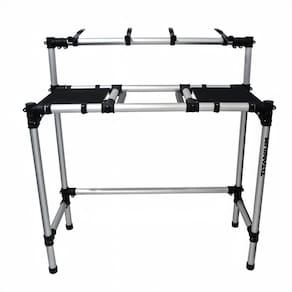 É um rackfabricado em alumínio, o que o torna leve para transporte,totalmente desmontável e resistente para suportar aparelhos pesados.Os Suportes são modulares podendo acomodar e adequar o seu equipamento da melhor forma e posição para sua performance de trabalho.