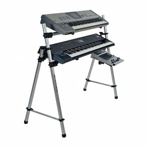 O Rack em formato "Y" é indicado para uso em até 2 teclados. Possui barra superior para teclado / piano de até 7 oitavas, e barra dupla para teclado / piano.
