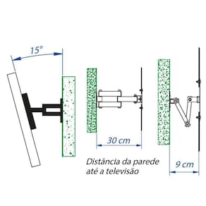 Com movimentos reduzidos, esse suporte é perfeito para pequenos espaços. Sua instalação é fácil e rápida, pois ele já vem pré-montado. Além disso, possui 3 articulações horizontais e 1 inclinação ical, permitindo que você ajuste a sua da maneira que preferir.