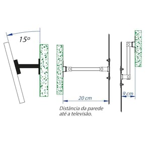 Com 2 articulações horizontais e 1 inclinação vertical, o Suporte Articulado Smart Tv Led 43 Samsung permite que você ajuste a posição da sua TV de acordo com sua preferência. Além disso, possui movimentos reduzidos, ideal para espaços pequenos. Sua distância máxima da parede é de 20 cm e a distância mínima é de 9 cm.