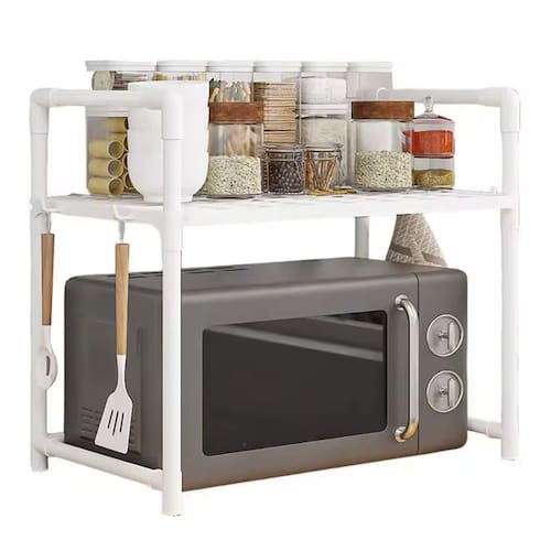 Os principais benefícios deste rack incluem a versatilidade de uso em bancadas, mesas e balcões, e suporte para microondas. Outro destaque é a durabilidade do produto, fabricado com materiais de alta qualidade, garantindo uma longa vida útil e resistência ao dia a dia da cozinha.