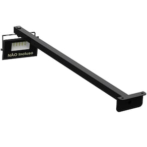 Suporte para refletor - fachada, banners ou out-door - braço com 60 cm Dados do produto: - produzido em aço e com pintura epóxi - sustentação de refletor com fixação em fachada, banners ou out-door - para todos os tipos de refletores - permite passagem interna da fiação. - possibilita girar o refletor 360 - montagem do refletor na parte superior ou inferior - garantia: 12 meses - carga máxima: 5 k - distância na parede = 60 cm