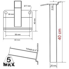 SUPORTE PARA REFLETOR - FACHADA, BANNERS OU OUT-DOOR - BRAÇO com 40 cm e Inclinação 10