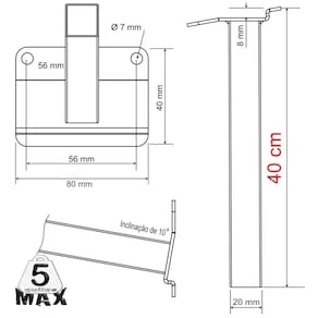 SUPORTE PARA REFLETOR - FACHADA, BANNERS OU OUT-DOOR - BRAÇO com 40 cm e Inclinação 10°