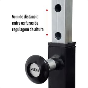 Suporte regulável para supino e agachamento - preto kit com 2 unidades O que acompanha - 2x suportes reguláveis para barra Descrição do produto O suporte regulável para supino e agachamento é a solução ideal para quem busca segurança e versatilidade no treino. Produzido com materiais de alta qualidade, ele oferece regulagem ajustável de altura e estabilidade, sendo perfeito para exercícios como agachamento e supino. Compacto e resistente, é indispensável para academias ou espaços fitness domésticos. Benefícios - altura ajustável: regulagem com pino para ajustar entre 97 cm e 172 cm. - estabilidade garantida: base robusta com ponteiras de proteção para evitar deslizamento. - durabilidade: estrutura em aço reforçado com pintura resistente à corrosão. - praticidade: compacto e fácil de armazenar após o uso. - facilidade no treino: suporte pensado para facilitar o manuseio e troca de pesos. Especificações técnicas - altura mínima: 97 cm - altura máxima: 172 cm - dimensões da base: 52,5 cm x 41 cm - material: estrutura em aço carbono com pintura eletrostática - capacidade de carga: resistente e adaptado a treinos mais intensos - cor: preto Áreas de aplicação - academias de musculação - espaços fitness residenciais - treinos funcionais e personalizados Modo de uso Posicione o suporte em uma área plana e estável. Ajuste a altura utilizando o pino regulador conforme o tipo de exercício desejado supino ou agachamento . Insira a barra no suporte antes de começar o treino. Ao finalizar, mantenha em local seco e limpo para maior durabilidade. e envio Sobre a nossa loja Com mais de 30 anos de experiência, somos referência na fabricação de móveis de alta qualidade para profissionais. Nosso compromisso é entregar produtos que aliam durabilidade, funcionalidade e design inovador, transformando espaços de trabalho em ambientes mais confortáveis e eficientes. Leve já o kit com 2 suportes reguláveis para supino e agachamento e transforme seu treino com estabilidade e conforto