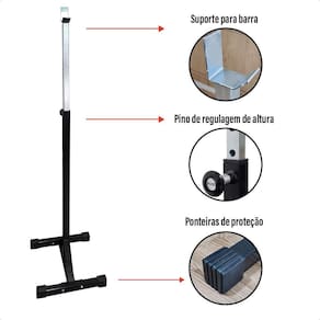 Suporte regulável para supino e agachamento - preto kit com 2 unidades O que acompanha - 2x suportes reguláveis para barra Descrição do produto O suporte regulável para supino e agachamento é a solução ideal para quem busca segurança e versatilidade no treino. Produzido com materiais de alta qualidade, ele oferece regulagem ajustável de altura e estabilidade, sendo perfeito para exercícios como agachamento e supino. Compacto e resistente, é indispensável para academias ou espaços fitness domésticos. Benefícios - altura ajustável: regulagem com pino para ajustar entre 97 cm e 172 cm. - estabilidade garantida: base robusta com ponteiras de proteção para evitar deslizamento. - durabilidade: estrutura em aço reforçado com pintura resistente à corrosão. - praticidade: compacto e fácil de armazenar após o uso. - facilidade no treino: suporte pensado para facilitar o manuseio e troca de pesos. Especificações técnicas - altura mínima: 97 cm - altura máxima: 172 cm - dimensões da base: 52,5 cm x 41 cm - material: estrutura em aço carbono com pintura eletrostática - capacidade de carga: resistente e adaptado a treinos mais intensos - cor: preto Áreas de aplicação - academias de musculação - espaços fitness residenciais - treinos funcionais e personalizados Modo de uso Posicione o suporte em uma área plana e estável. Ajuste a altura utilizando o pino regulador conforme o tipo de exercício desejado supino ou agachamento . Insira a barra no suporte antes de começar o treino. Ao finalizar, mantenha em local seco e limpo para maior durabilidade. e envio Sobre a nossa loja Com mais de 30 anos de experiência, somos referência na fabricação de móveis de alta qualidade para profissionais. Nosso compromisso é entregar produtos que aliam durabilidade, funcionalidade e design inovador, transformando espaços de trabalho em ambientes mais confortáveis e eficientes. Leve já o kit com 2 suportes reguláveis para supino e agachamento e transforme seu treino com estabilidade e conforto Marca: Não Informado Ean: 7898580216668
