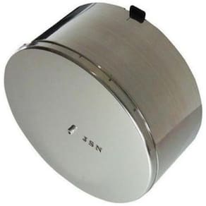 Aço inoxidável430 com 0,5mm de espessura com fechadura central para manter o produto trancado, evitando, assim, o furto do papel, bem como a abertura indevida da tampa do suporte e visor para controle da substituição do papel.