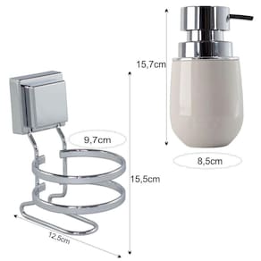 - 01 Suporte Cromado Fixação Ventosa, 01 Porta Sabonete Líquido