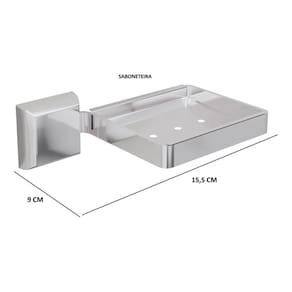 Saboneteira com design moderno e sofisticado para transformar qualquer banheiro. Feita com alumínio maciço polido e acabamento em aço inox de alta qualidade que oferecem durabilidade e resistência à água. Acabamento elegante que combina com diferentes estilos de decoração. Ideal para quem busca praticidade sem abrir mão do bom gosto.